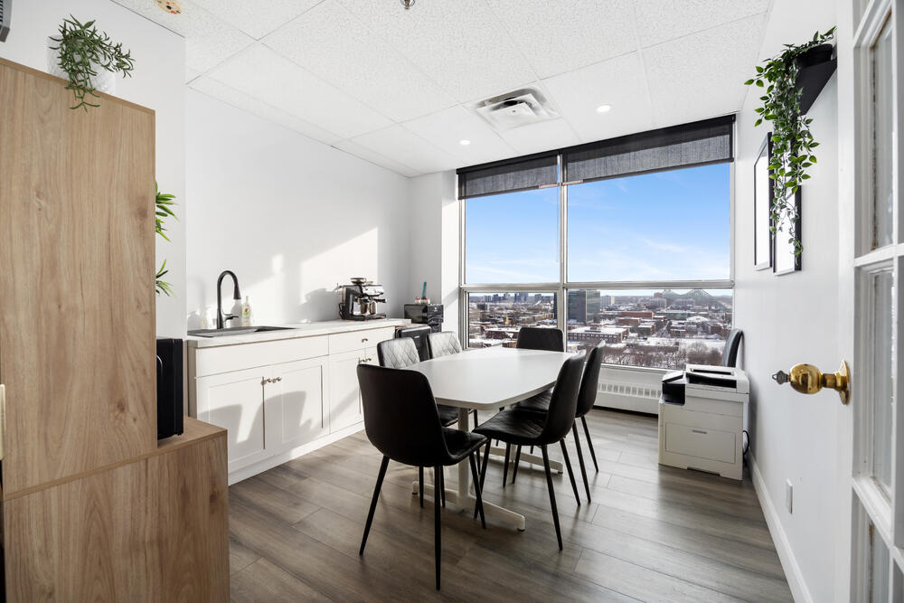 La suite 1011, située au 10e étage de l’immeuble avec une superficie brute d’environ 860 pi.ca. offre un aménagement de trois (3) bureaux fermés, une (1) cuisinette avec espace salle à manger, une (1) réception ainsi qu’une (1) salle d’attente.Il est particulièrement rare de trouver sur le marché un espace de bureaux de moins de 1 000 pi.ca offrant quatre (4) espaces fermés, tous bénéficiant de vues extérieures dégagées, en plus de deux (2) accès indépendants (voir plan).